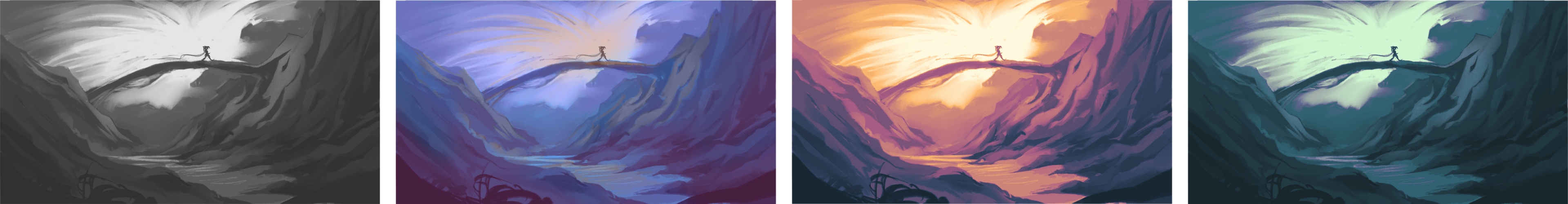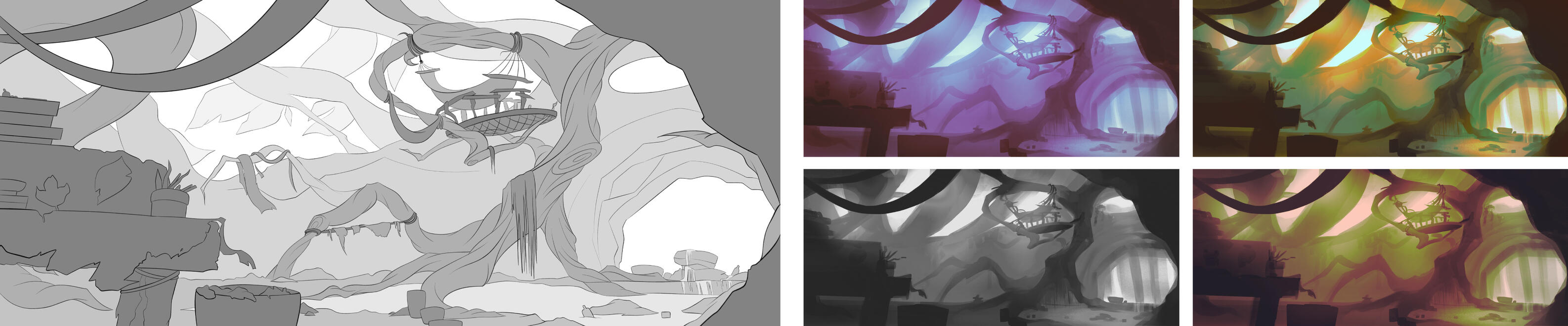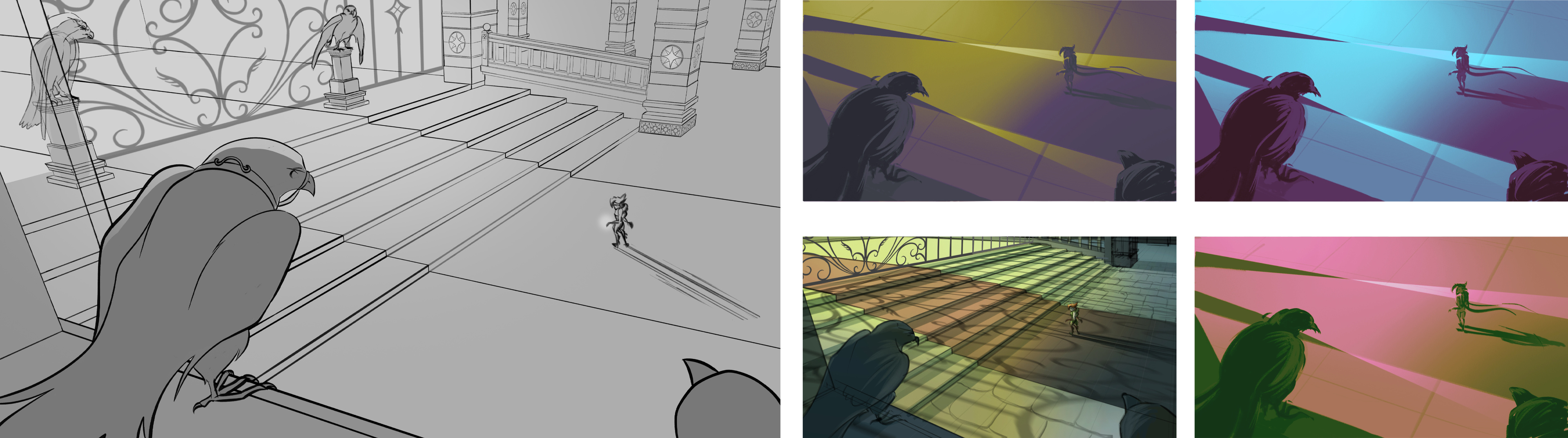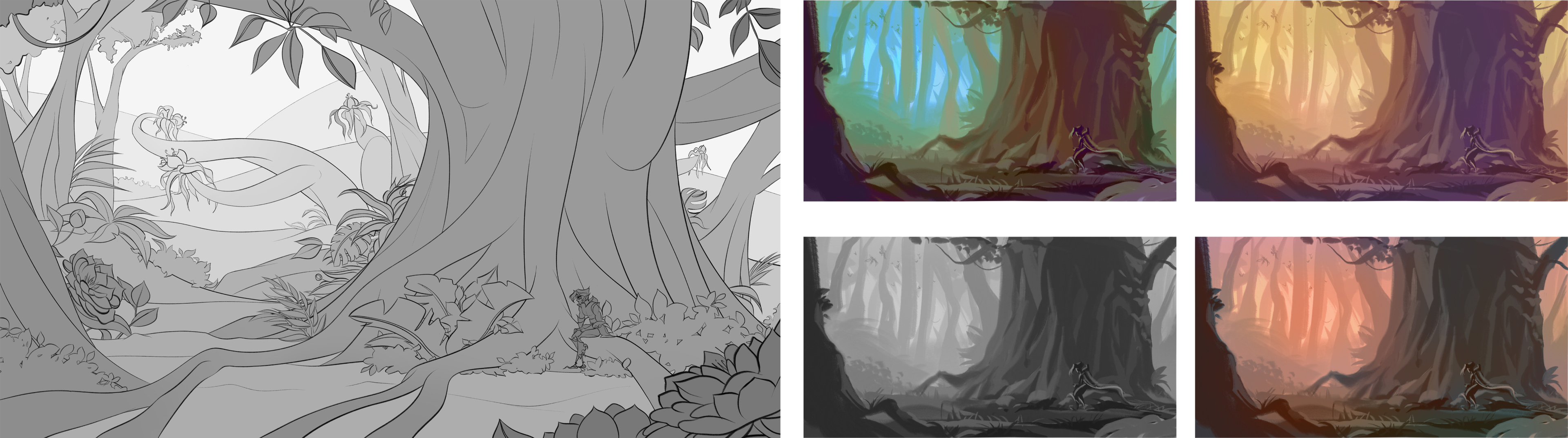 Storytelling is a huge passion of mine so processes are important. Many of my works start from thumbnails to quick color keys, and sometimes layouts with tonals.