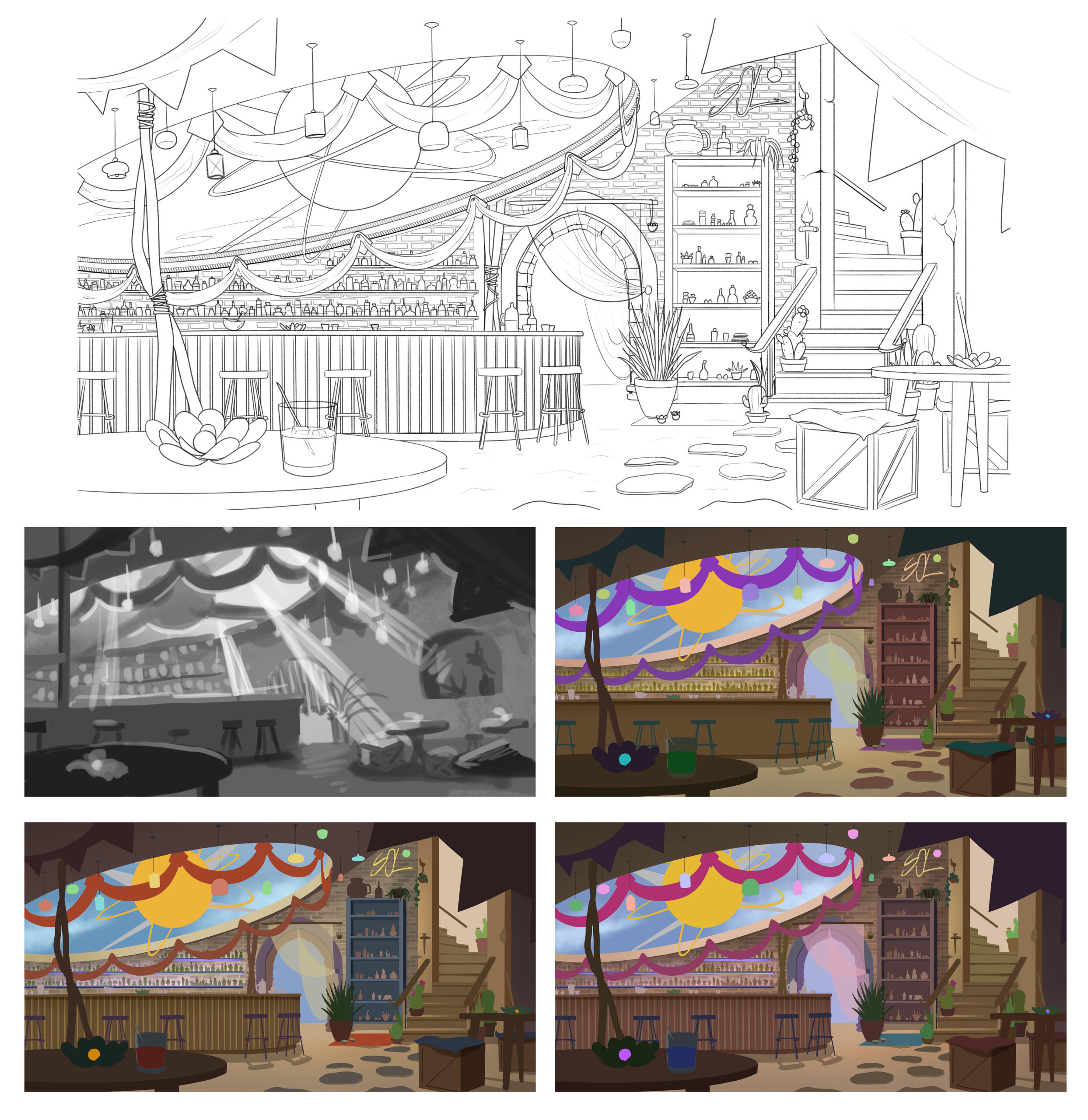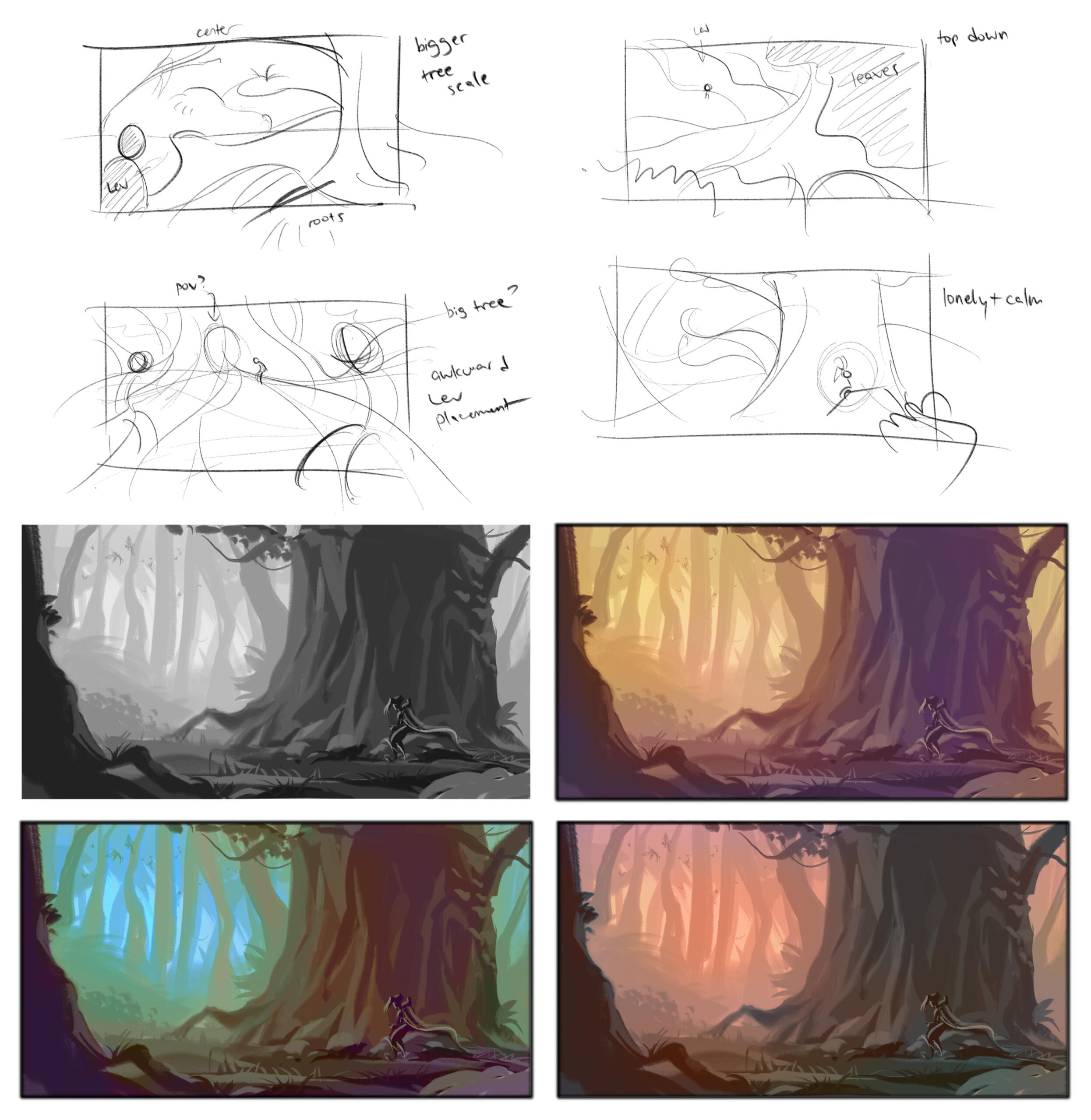 Storytelling is a huge passion of mine so processes are important. Many of my works start from thumbnails to quick color keys, and sometimes layouts with tonals.